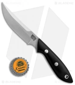 The Bark River Adverturer Persian is a full sized fixed blade knife ready for any camp or hunting chore. Crucible CPM-154 stainless steel is the perfect combination of tough, corrosion resistant and edge retention for a outdoor fixed blade knife. The black canvas micarta scales are palm filling for a secure and comfortable grip. Weighing 7 ounces, the knife is lightweight in hand or in the included hand made leather belt sheath.