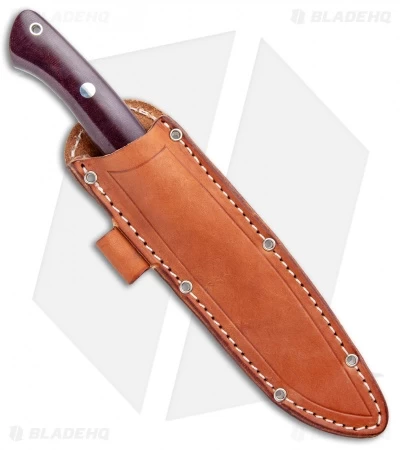 This Aurora II fixed blade features a satin finished CPM-3V blade and a burgandy Canvas Micarta handle. Includes a genuine leather belt sheath for secure carry.