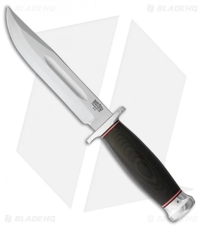 The Boone II by Bark River fixed blade knife features a 6.125″ A2 clip point blade, excellent for processing medium to large game. Comfortable black canvas micarta handle fits well in the hand while nickel silver finger guard and mushroom end caps add an additional layer of safety. At under 9 ounces, the Boone II is capable of large cutting tasks while also being nimble in hand and easily packable with the included hand made leather sheath.