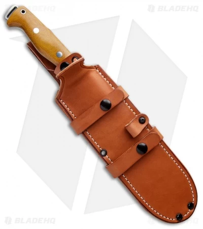 This Bravo Crusader model is outfitted with a natural micarta handle and a satin finished 3V steel blade. The Bark River Bravo Crusader is a full-size outdoor fixed blade built tough with an over 1/4″ thick full tang design. A convex ground blade provides versatile cutting performance for hunting applications. Item includes a premium leather belt sheath.