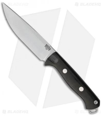 This Bravo Vortex fixed blade features an A2 tool steel blade with jimping on the spine. Its handle is fitted with Black Canvas Micarta scales.