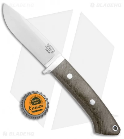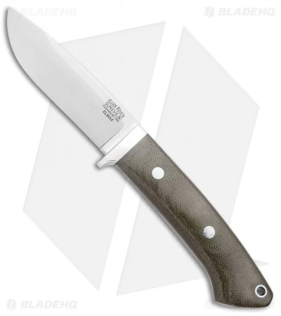 This Bark River Classic Drop Point fixed blade features an Elmax steel blade and a Green Canvas Micarta handle.