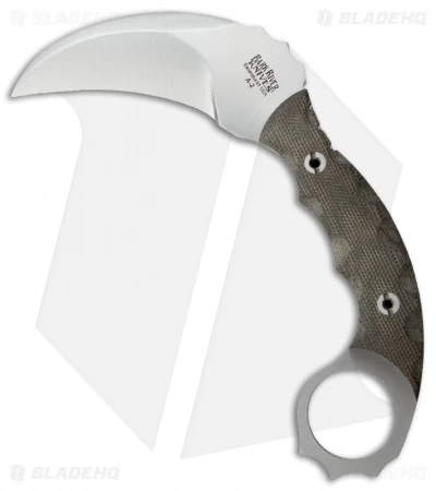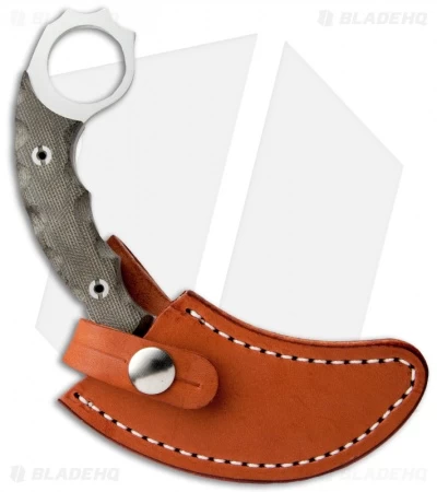 The Ghost II karambit knife was designed by Scott Horn of Airborne Knives for Bark River. This model has green canvas micarta scales. It’s quite secure in hand as a result of the sculpted scales and finger ring hole. The hawkbill style blade is shaped like most traditional karambits and has a sharp point and convex ground edge. The Ghost II includes a leather sheath. If you’re in the market for an exceptional karambit, then you’ll want to strongly consider the Bark River Ghost II.