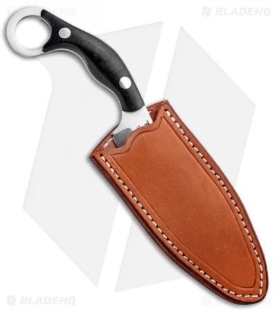 The Bush Bat is a collaborative design from custom knife maker Shane Wink, outdoor expert Chris Tanner, and Mike Stewart. They combined the tactical capabilities of a karambit with the functionality of a skinning knife. The sweeping wharncliffe blade is fantastic for skinning but will also excel with light to medium cutting tasks. Fire or food prep, game processing even carving is a breeze with the convex edge scandi grind. The uniquely shaped micarta handle helps elevates the fingers above the cutting edge for comfortable use. Included is a hand made leather neck sheath that holds the blade securely in place with rare earth magnets.