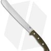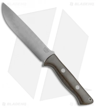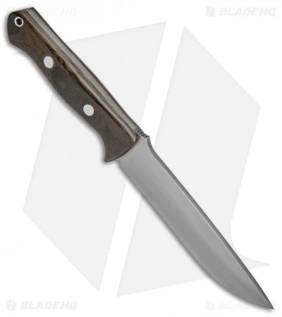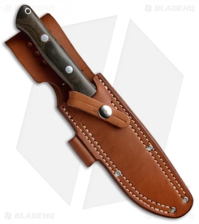 This Bark River Bravo 1.5 has a CPM-3V stainless steel blade and a green canvas Micarta handle. Includes a leather sheath.