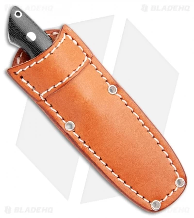 The Mini Canadian fixed blade knife by Bark River Knives is a small all-purpose blade for those small to medium-sized camp or hunting tasks. Despite its overall small size, the Mini Canadian allows for a full four-finger grip in the large ricasso. Having a secure grip near the cutting edge provides a great deal of control and power for detailed cutting. The contoured black canvas micarta scales are pinned and epoxied for a strong bond able to stand up to a lifetime of use. The hand-made tanned leather sheath keeps the knife secure when not in use and has multiple lashing points for various carry options.