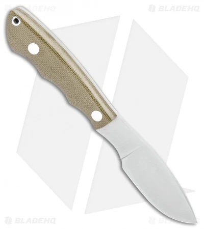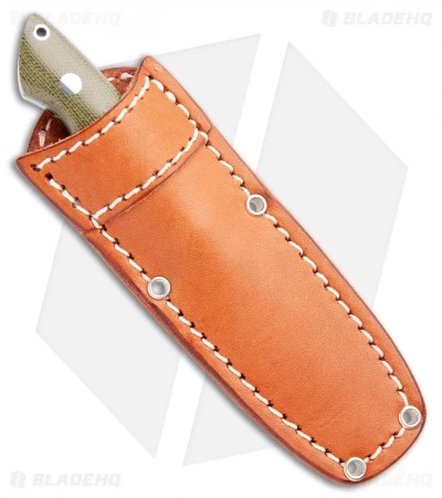 The Mini Canadian fixed blade knife by Bark River Knives is a small all-purpose blade for those small to medium-sized camp or hunting tasks. Despite its overall small size, the Mini Canadian allows for a full four-finger grip in the large ricasso. Having a secure grip near the cutting edge provides a great deal of control and power for detailed cutting. The contoured green canvas micarta scales are pinned and epoxied for a strong bond able to stand up to a lifetime of use. The hand-made tanned leather sheath keeps the knife secure when not in use and has multiple lashing points for various carry options.