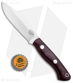 This model of the Bark River Mini Tundra comes with a satin finished Elmax blade and burgandy canvas micarta handle scales.