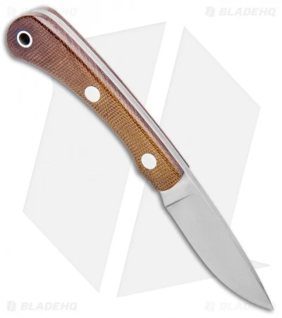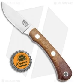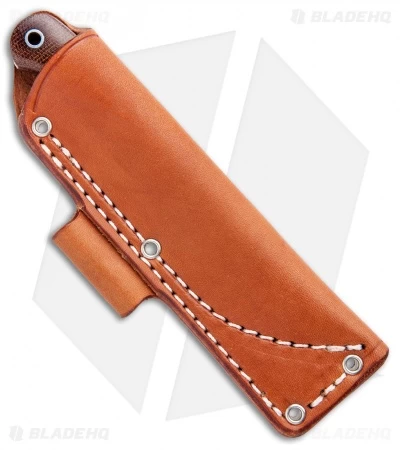 This model of the Bark River Pro Scalpel II comes with a natural micarta handle, a satin finished blade, and a brown leather sheath.