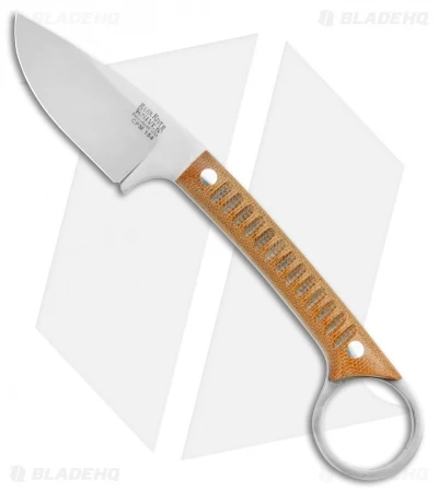 Featuring CPM-154 full tang stainless steel, the Ringtail can easily take on any of your small camp or hunting chores. Excellent as bird or trout knife or woodcarving, the slender natural canvas micarta scales are comfortable in hand, while the ring allows for a myriad of grip options. The Ringtail can be easily carried as a neck knife with the included hand made leather sheath.