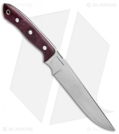 This STS model is built with a burgundy canvas micarta handle and a 7.5″ satin finished blade.