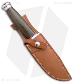 The Bark River Teddy is a hefty fixed blade knife for hunting and bushcraft. The Bowie-style A2 blade has good toughness and wear resistance so it can hold up against heavy use. The guard gives the Teddy a traditional Bowie knife appearance while protecting your fingers from any blowback as you hack and slash your way through the wild. A leather belt sheath makes this heavy-duty knife easy to carry on your belt through all your adventures.