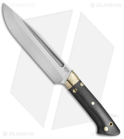 The Bark River Vidarr is custom knifemaker Dan Tope’s take on a fusion of the American Bowie and Scandi Bowie knife. It features a durable Bowie-inspired blade with a convex grind and a large fuller groove. The handle is a comfortable combination of brass and polished Micarta that offers a practical grip and an eye-catching aesthetic. Includes a genuine leather belt sheath for secure carry.