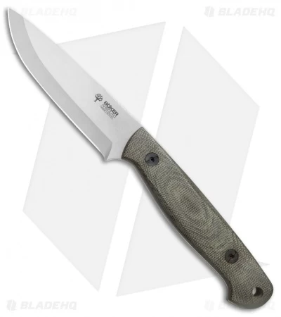 This Boker Arbolito fixed blade offers a scandi ground blade and a micarta handle for high performance bushcrafting and camp use. The blade is made from tough and durable Bohler N690 steel, that will stand up to any outdoor cutting job. Linen micarta scales ensure a secure grip in a variety of difficult conditions. A flat spine provides for ferro rod striking with a jimped thumb rest near the handle for precise cutting. Item includes a leather sheath with a belt loop, stainless D-ring, and a ferro rod sleeve.