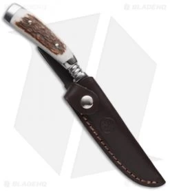 Hunters have often asked Boker for a high quality hunting knife produced in Solingen. So, Boker got together with the Austrian knifemaker Stefan Gobec, and figured out how to improve something good to become even better. The result is a hunting knife in a traditional form. However, Boker has used the proven N690BO stainless steel, which sets standards with its excellent cutting performance in its class. The combination of production and the material gives this full integral nicker maximum stability, without affecting the cutting properties. The flat ground blade is 4.1 mm thick. The clean fitted stag scales sit on a tapered tang, which not only reduces weight but also optimizes balance. The gently sloping handle offers unparalleled ergonomics and terminates with a crown handle, which also serves as a solid and non-slip thumb rest. Comes with slim sheath with detachable belt loop for carry.