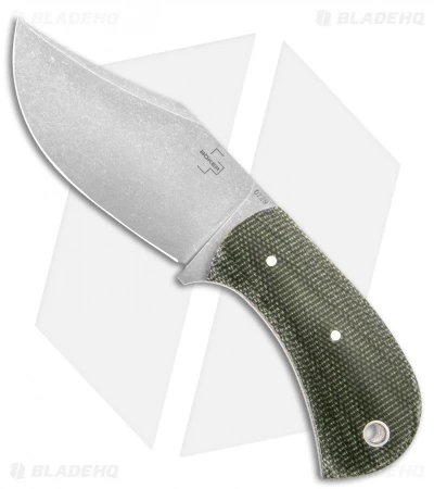 - Clip point fixed blade made of D2 steel with a stonewash finish.