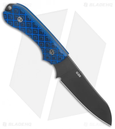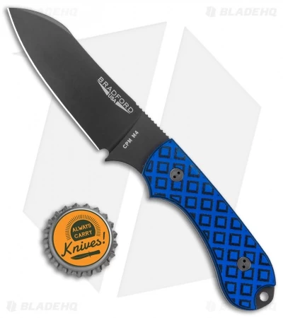 This Blade HQ Exclusive Bradford Guardian3 features a black DLC coated blade and a textured black and blue G-10 handle.