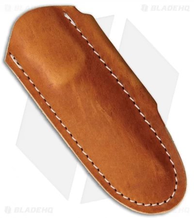 - Horizontal leather belt sheath with plastic insert for proper blade alignment.
