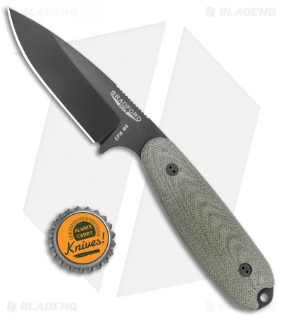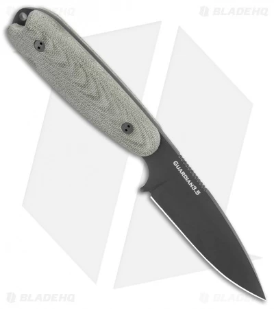 This Blade HQ Exclusive Bradford Guardian3 features a black DLC coated blade made of CPM-M4 steel and some 3D OD Green micarta handle scales.