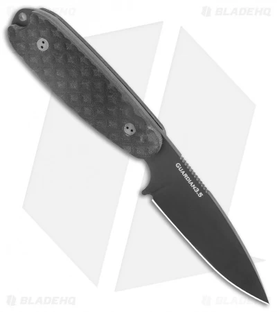 This Blade HQ Exclusive Bradford Guardian3 features a black DLC coated blade made of CPM-M4 steel and some textured black G-10 handle scales.