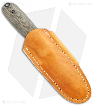 - Horizontal leather belt sheath with plastic insert for proper blade alignment.