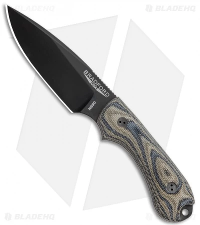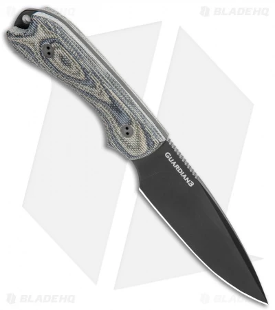 The Guardian3 is a relatively compact fixed blade that is designed to handle the work load that might typically fall upon a heavy duty everyday folder. Bradford Knives uses Bohler N690 steel with a double temper and cryo treatment for exceptional blade characteristics. 3D micarta scales offer a comfortable grip without being abrasive. Each knife includes a premium leather sheath with belt loop and plastic blade insert.