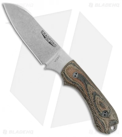 The Guardian3 is a relatively compact fixed blade that is designed to handle the work load that might typically fall upon a heavy duty everyday folder. Bradford Knives uses Bohler M390 steel with a double temper and cryo treatment for exceptional blade characteristics. 3D micarta scales offer a comfortable grip without being abrasive. Each knife includes a premium leather sheath with belt loop and plastic blade insert.