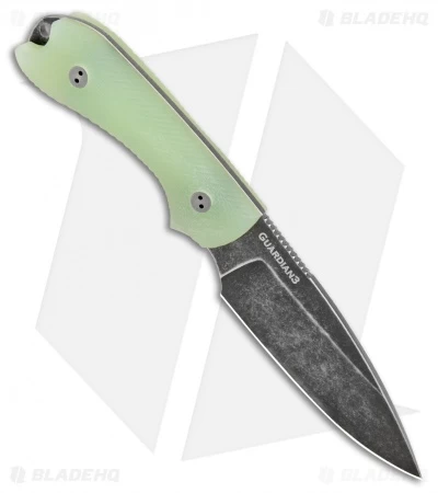 This Blade HQ Exclusive Guardian 3 model has a black stonewash finished blade and 3D jade G10 handle scales.