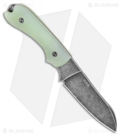 This Blade HQ Exclusive Guardian 3 model has a black stonewash finished sheepsfoot blade and 3D jade G10 scales.