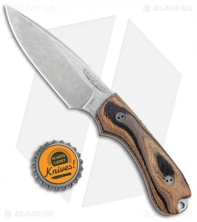 The Guardian3 is a relatively compact fixed blade that is designed to handle the work load that might typically fall upon a heavy duty everyday folder. Bradford Knives uses AEB-L steel with a double temper and cryo treatment for exceptional blade characteristics. Machined G-wood scales offer a comfortable grip without being abrasive. Each knife includes a premium leather sheath with belt loop and plastic blade insert.