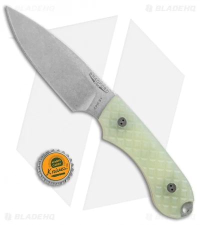 This Guardian4 model features a Peters’ heat treated CPM-3V steel blade with a sabre grind and a stonewashed finish. The handle is fitted with Ghost G-10 scales.