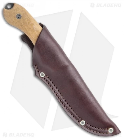 The Guardian4 joins the Bradford Knives lineup, offering a larger blade that is well-suited for camping and hiking activities. It shares the same design as the Guardian3 and is available in a false edge (swedge) or sabre grind, with several blade finish options. The choil is designed to easily strike a ferro rod and the handle has 3D natural Micarta scales (spanner #6 is required to remove scales). Each knife includes a premium leather sheath with a protective plastic blade insert and is set up for vertical carry.