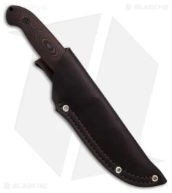 - 3D microtextured chocolate and red Richlite handle scales over a full tang.