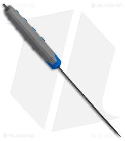 - Textured gray and blue handle with jimping for your thumb.