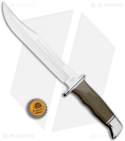 The 120 General Pro fixed blade is a big, heavy duty knife. The Buck General knife has a deep clip point blade with hollow grinds and a satin finish. This 120 General has an upgraded CPM-S35VN blade and a green micarta handle.