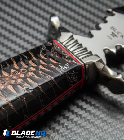 The 981 Conifer Dagger is a limited edition fixed blade by Buck Knives. This knife features a stunning resin coated pinecone handle with nickel silver and aluminum accents. The stylized dagger blade is made from 420HC stainless steel with a mirror polish. The Conifer Dagger is a fine collector’s piece that can be passed on through generations. Includes a glass top wooden presentation case for display.