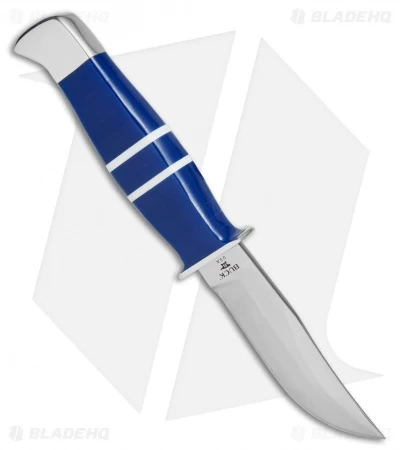 The Buck Ranger is based on a classic Buck fixed blade design that has been updated with collectible materials. It features a W2 steel blade for a high performance cutting edge. The handle is wrapped in rich blue and white lucite with a polished pommel and guard. Item includes a high quality leather sheath and a pine gift box. This limited edition series is serialized and includes a certificate of authenticity.