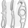 This PakLite Field Master Kit contains the 141 PakLite Large Skinner, the 135 PakLite Caper and the 499 PakLite Guthook. Each knife in this set comes with an orange traction coating. All three items are carried in a “Realtree Extra” green camo sheath. The sheath itself is built with removable liners. Once these liners are removed the sheath is washable. Zipper pockets are included in the sheath for carrying tags and other necessary items. The back of the sheath has an adjustable belt strap, so carrying this pack is easy and comfortable. With this kit, hunters everywhere will appreciate the convenience of having three knives on them for the weight of one, when weight counts – pack light, cut easy!