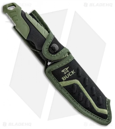 Buck set out to create a quality mid-range hunting fixed blade that could handle a wide range of multi-purpose tasks, and the successful end result was the Pursuit Series. This large model has a 4.5″ clip point blade and a green GFN handle with a grippy Versaflex overlay. A high performance grip is further aided by finger grooves and thumb rest jimping. The classic clip point blade has a sharp tip and a deep curved belly for skinning applications. The Buck Pursuit offers a dependable hunting fixed blade designed for maximized outdoor performance.