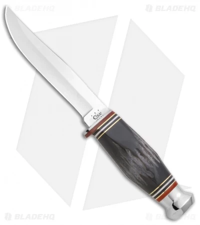 The Case Cutlery BH65-5 SS is a fixed blade knife for hunting. The stainless steel, clip point blade has a polish finish. The handle is made of black buffalo horn that features a stainless steel guard and pommel. It comes with a black leather belt sheath.