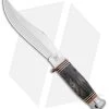 The 00384 Leather Hunter knife from Case Knives features variegated brown leather handles and a stainless steel clip point blade with the Case XX logo stamped on the tang. It also comes with a stitched leather belt sheath. (323-5 SS)