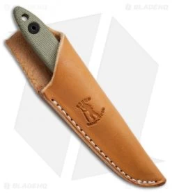 The Camp-Lore series of knives from ESEE are designed by some of the most experienced woodsmen in the world and made by Rowen in Idaho, USA. The CR2.5, designed by Cody Rowen, has a stonewashed 1095 steel flat ground blade with a tan Micarta handle. This is the smallest knife in the Camp-lore series and it features a smooth rounded handle. It is supplied with a leather sheath with belt loop.