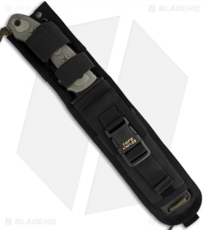 The Apache Falcon from TOPS Knives is a large fixed blade with a gray coated 1095 steel clip point style blade that measures in at over 6 inches. The handle is fitted with Rocky Mountain Tread textured Micarta scales. The choil allows the user to comfortably choke up on the blade for detailed tasks. The Apache Falcon comes in a tough nylon sheath with an buckled external pocket for additional items.
