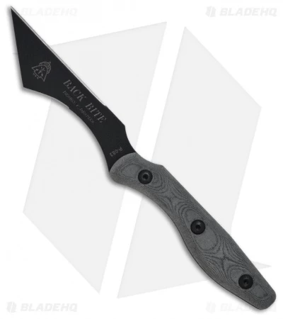 The Back Bite incorporates a unique combination of concave strike face edge, Wharncliffe BACK edge and flat chisel point. When gripping the Back Bite in the blade down strike face edge forward, the operator is enabled to deliver devastating blows to the adversarys vital targets and to attack or defend!