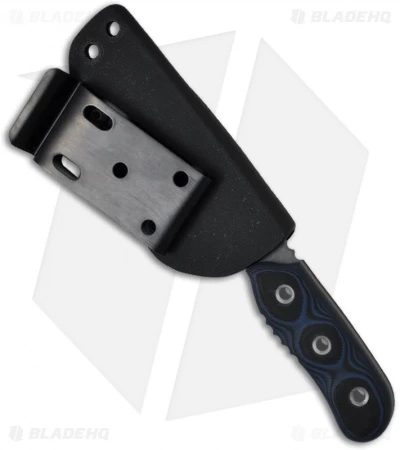 The Bagdad Bullet knife is a great small fixed blade from TOPS Knives. It has a 3/16″ thick tactical gray finished 1095 steel blade with a plain edge. The black and blue G-10 handle is 5/8″ thick and combined with the jimping and index choil make for a secure grip. A black Kydex sheath with steel belt clip is included for convenient and easy carry.