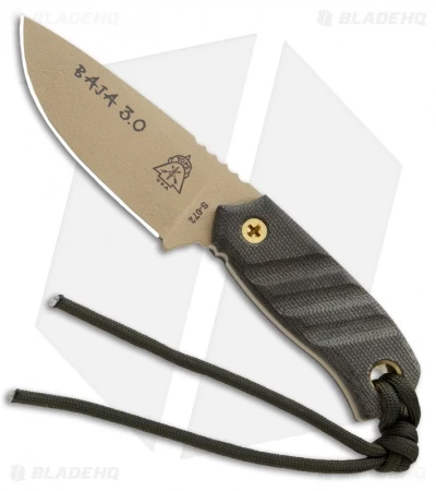 The Baja 3.0 knife is the result of simple design and fine execution. The lines are simple yet effective. The 3 inch blade can adequately handle a wide variety of tasks, such as fashioning wooden implements, building fire and shelter, or taking an animal apart. The 1/8″ thick, 1095 high carbon steel can take a long slice with ease. The simple handle design with its grooved green canvas Micarta scales, enables the user excellent traction in most circumstances.