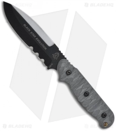 TOPS Knives Black Star Evolution Knife Fixed Blade (5″ Black Serr) BSE-01
