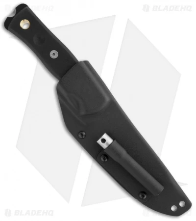 The handle is one of the most ergonomic ones on the market, sporting several useful additions. Although knives with a lot of frills often end up lacking, the additional items found on the Fieldcraft knife were selected from experience and critiqued in every step of design, development and production. Being made of black G10, the handle will never let you down. The bow drill divot on the handle is frictionless and makes starting those primitive fires almost effortless. The “Thumb Scallops”, formed on the hilt of the handle offer more comfort and control when using specialized carving and skinning grips. The pommel of the blade is simply the tang of the knife exposed enough to allow impact from a baton to not effect the handle (though the micarta is definitely tough enough to take such abuse). On the exposed pommel, you will find a scraper specially designed by one of The Brothers of Bushcraft, for striking Ferro rods in a safe and efficient manner.