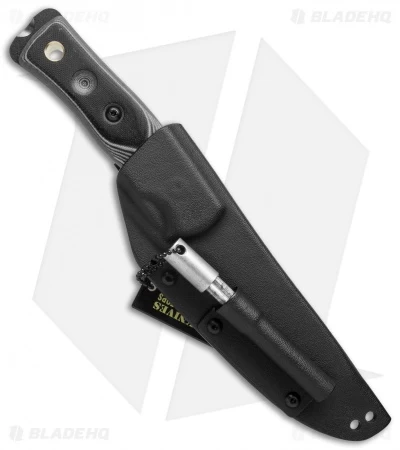 This model of the TOPS Knives Fieldcraft BOB fixed blade sports layered white/black G-10 scales and includes a Kydex sheath with firestarter set.