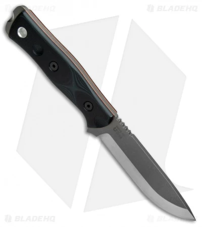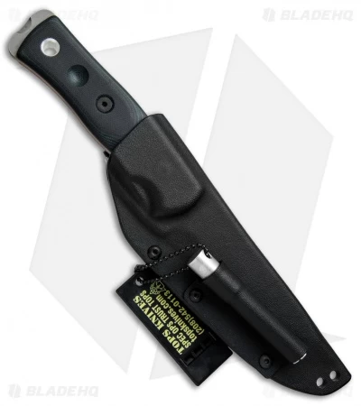 This model of the TOPS Knives BOB Fieldcraft fixed blade sports layered black/green G-10 scales and a gray finished 154CM blade. It includes a Kydex sheath and a firestarter set.